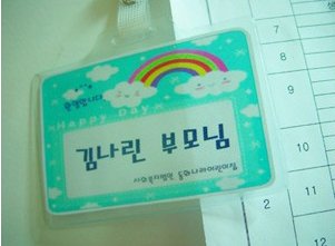 어린이집 선생님께서 이름표 하나를 내 가슴이 달아주심..