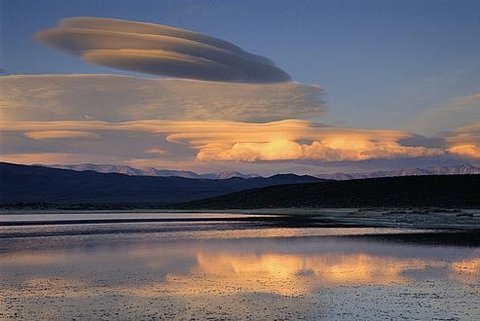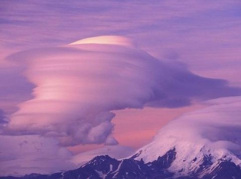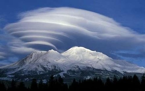 렌즈 모양의 구름이 여러겹 쌓인 모습의 렌즈 구름(Lenticularis)