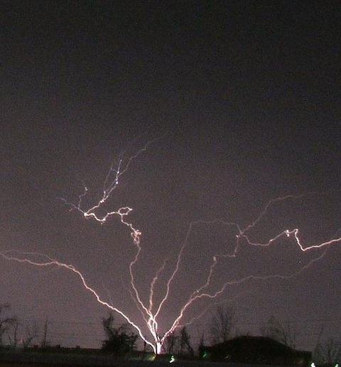미국에서 촬영된 '땅에서 하늘로 솟구치는 번개'입니다.