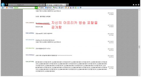 (c3856f2d)은 자신의 아프리카 주소를 자신의 댓글로 남김 http://afreeca.com/pink9405