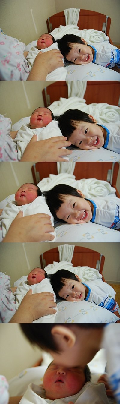 큰애때문에 아빠는 고대하던 탯줄도 못 자르고 병실에 와서야 아가를 볼수 있었음.