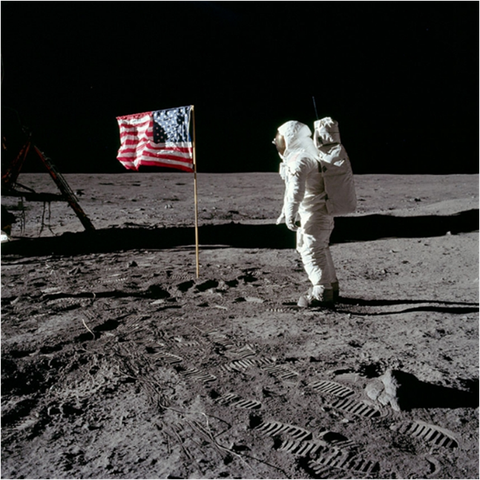 공기가 없는 달에서 미국국기가 펄럭이는 것을 보게된다.