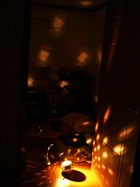 그럼 미러볼 특유의 빛의 반사로 독특한 빛그림자가 공간 가득 채워지게 되요