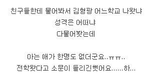전 형광이가 멀리서 전학왓다는 글 쓴적업고......제가 말한 전학왓다는 소문은