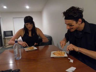 분장 다 하고 배고프다며 빵에 스파게티 올려놓고 우아하게 칼질 중 ㅋㅋㅋ