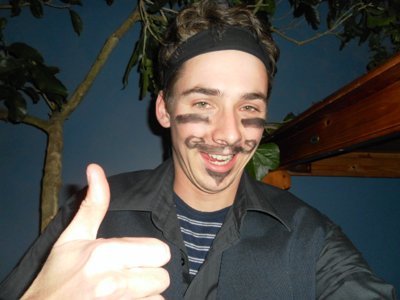 검은색 띠 이마에 두르고 아이라인으로 볼에 줄 두개 그어서 나타났던 거임 ㅋㅋ