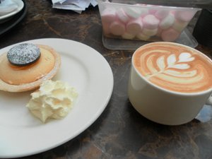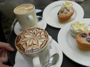 온지 얼마 안되서 여러번의 낙방 끝에 큰 회사의 카페에서 일을 구해서 풀 타임으로 열심히 일하고