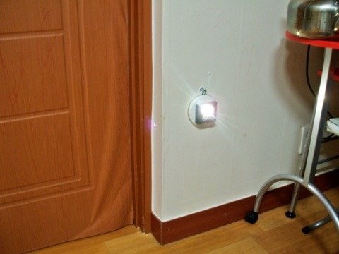 센서등이 바로 필요한 곳! 현관 바로 옆에 두고 집에 불 다끄고 찍은 사진이에요