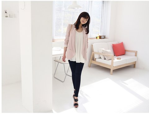사촌 동생 결혼식때 입을 옷을 찾고 있는데, 이 자켓이랑 블라우스 어때요?
