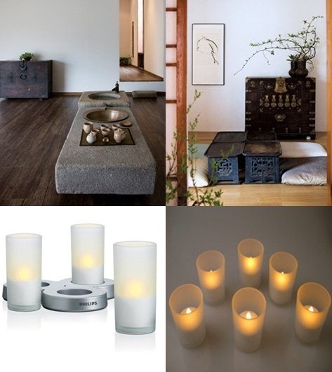< 멋스러운 조화를 이루는 좌식테이블과 촛불스타일의 캔들라이트/티라이트>