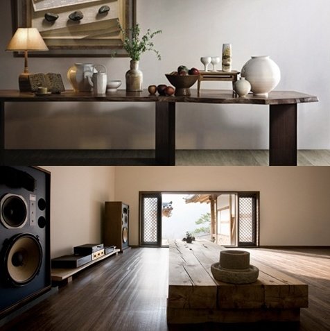 다듬이돌 테이블과 나무 반상, 자개장으로 충분히 옛스러움을 살렸다면