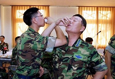 간략하게 저 사진을 설명하자면 당신은 평범한 삼성 회사원인데 각 대표들과 이건희가 당신 가운데 놓고 얘기하는거임 만약 저기서 허튼 실수라도 하는 순간 위에서부터 내림갈굼과 엄청난 부담감을 안기게 됨. 실제 군대에서 투스타정도가 떠서 지나가다가 바닥에 돌이 좀 많군 하면 그날 바닥은 새로 깔거나 100%모레들로만 구성. 풀이 많이 자랐네 하면 그 부대 전 군인들 낫, 예초기, 삽 투입 이제 더이상 뭐라 설명할수가 없구나.....군대 다녀오세요.....(__);;