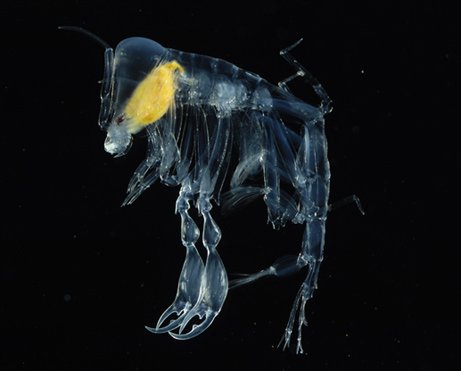 동물성 플랑크톤의 일종으로 단각류에 속하며 북대서양 해저산맥에서 발견되었다. 새우와 유사하게 머리 눈 턱 발톱 등을 가지고 있고, 크기는 약 2.5cm 정도 되며, 작은 플랑크톤을 먹고 산다. 심해의 어두운 환경에서 자신을 보호하기 위하여 투명한 몸을 가지고 있다.