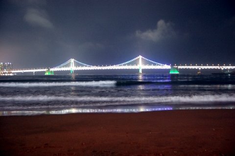 해가 슬슬지고 지하철을 타고 광안리로 광안리는 2번째오는거지만 해지고나서 광안대교에 불이들어와야 참된 광안리라고 할수있다ㅋㅋ 길바로건너에는 술집들이 탁!~