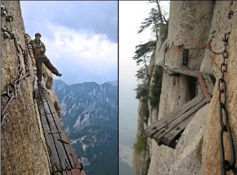 후아산은 중국 5대 험난한 산의 하나로 산 정상으로 올라가기 위해서는 이 길을 거쳐야 합니다.