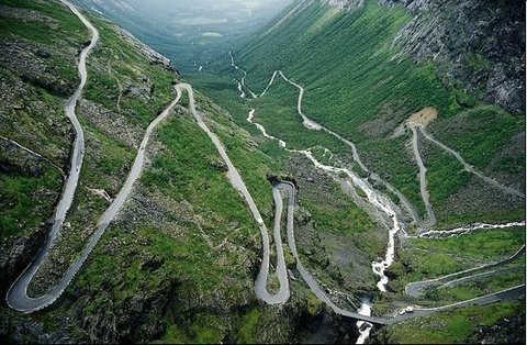 노르웨이의 루아마에 있는 Trollstigen(The troll ladder)이라는 산길은 총 11개의 180도에 가까운 헤어핀 턴이 있으며 정상에 올라가면 Stigfossen이란 폭포를 만나게 될 수 있습니다.