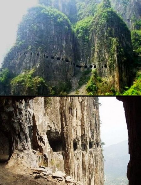 중국 후난의 타이항 이란의 산 중턱에 위치한 높이 5미터, 넓이 4미터 그리고 총길이 1,200미터의
