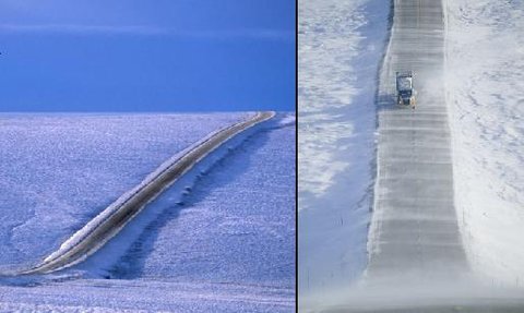 647km의 알라스카의 이 고속도로는 휴개소, 주유소 등은 절대 없는 거의 완벽한 직선 코스의 빙판 고속도로로 휴개소, 주유소등은 절대 찾아 볼 수 없습니다. 이 고속도로에 들어가기 전에는 충분한 기름과 음식물은 필수라 합니다.
