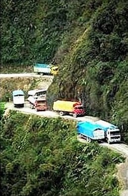 죽음의 길이라고 알려져 있는 볼리비아의 이 도로는 세계에서 가장 위험한 길이라고 공식적으로 알려져 있으며 매년 200~300명의 여행객들이 이 길에서 추락 사고로 목숨을 잃는다고 합니다.
