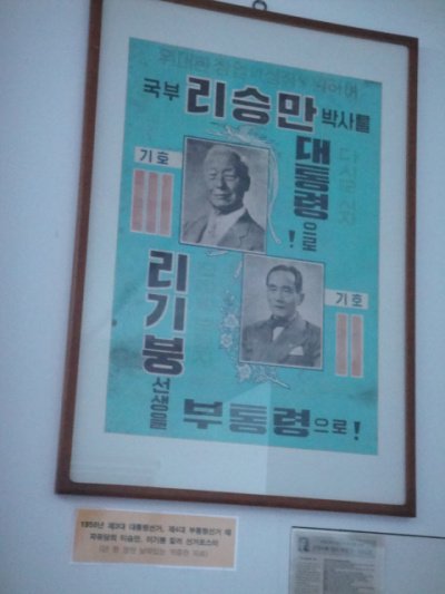 2층 전시관에는 한국정치와 관련한 자료들이 전시되어 있었다. 여기서 희귀자료는 5.16 쿠데타 당시 박정희가 당시 참모총장이였던 장도영에게 썼던 친필편지의 복사본이었다. 그 내용은 참모총장에게 같은 편에 서서 나라를 구하는데 앞장서달라는 것이었다. 또 1956년 때의 대통령선거 포스터도 볼 수 있었다. 이 포스터에는 후보의 기호가 숫자가 아닌 작대기로 표시되어있었는데 당시에는 문맹자들이 많았기 때문이라고 했다. 또 한쪽에는 일년의 한장짜리 달력이 여러 장 전시되어 있어서, 무엇인지 궁금하게 봤는데 5-60년대에 국회의원 후보자들이 사람들에게 나누어줬던 달력이라고 했다. 당시에는 달력을 구하기가 매우 어려웠는데 농민들에게는 꼭 필요한 정보들이 그 달력에 많이 들어있어서, 선거 홍보 효과가 매우 높다고 하였다. 우리나라가 양원제를 실시하던 1960년의 민의원, 참의원 투표용지도 볼 수 있었다.