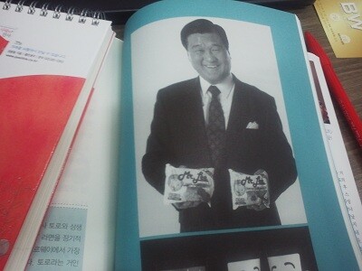 사진속에 들고 있는건, 52세에 처음 만든 미스터 리, 라면이라고 한다.