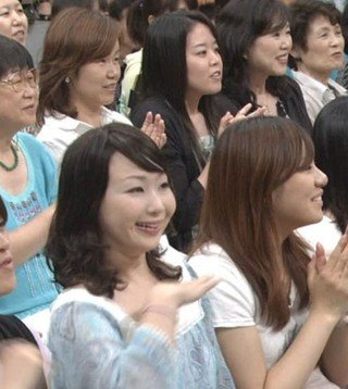 여성 방청객의 순간 캡쳐 된 사진을, 여성의 얼굴색과 눈부분, 그리고 목의 기울기 각도를
