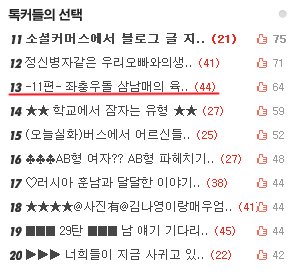오늘 보게 됐는데 그 수많은 글들 중 제글이 무려 13위에.. ㅠㅠㅠㅠㅠㅠㅠㅠㅠㅠㅠㅠ