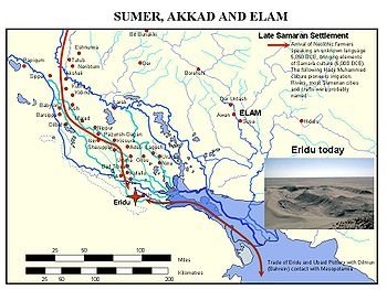 그 증거로 북부의 사마라 유적의 토기오 수메르의 토기의 유사성을 들었으며 또한 수메르인들은