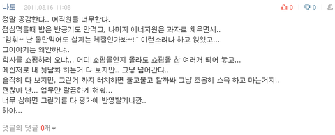 참으로 성숙한 직장마인드로군요..ㅉㅉ