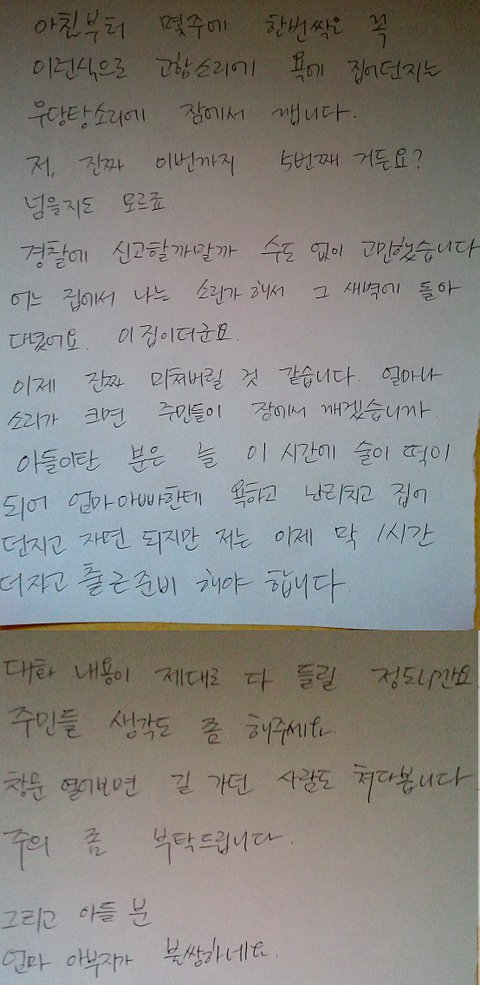 몇호! 라고 명시하기도 좀 그렇고 해서 우체통에 편지를 써서 넣어놨습니다.