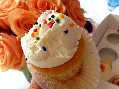 바닐라 컵케이크+바닐라크림+생일파티를 연상시키는 rainbow sprinkles !