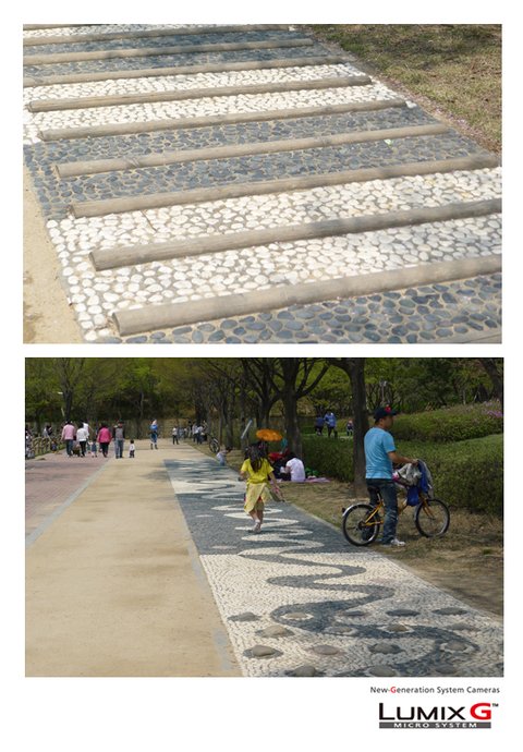 돌로 된 길이죠. 지압보도의 효과도 나와있내요.