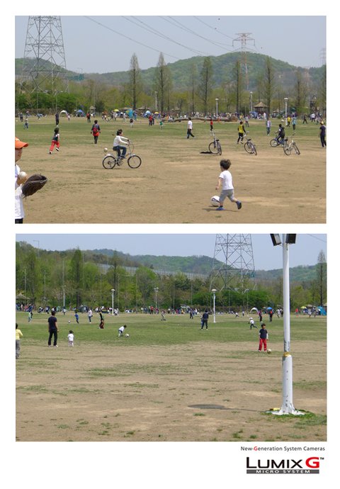 공터가 너무 넓어서 많은 사람들이 띄엄띄엄 축구, 야구 등을 해도
