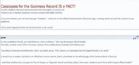 -팬클럽 카시오페아가 가장 거대한 팬클럽으로 2008 세계 기네스북 등극 (공식 80만명)