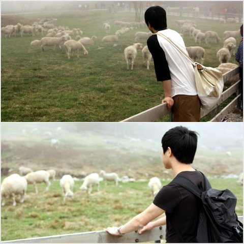 양들 놀래켜 볼려고 집에서 가져온 표범무늬 가디건도 입어봤지만 양들에게 소용 없어서 바로 벗었습니다. 누구나 살면서 무리수 한번씩 마시잖아요? ㅠ