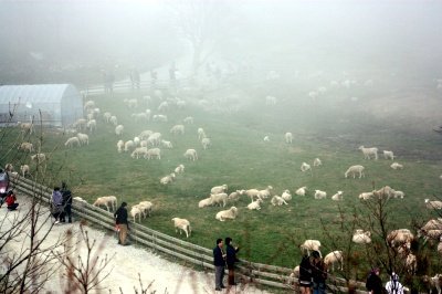 조금 더 올라가자 양들이 뛰어 놀고 그 보다 많은 사람들이 둘러싸고있는 목장이 나왔습니다