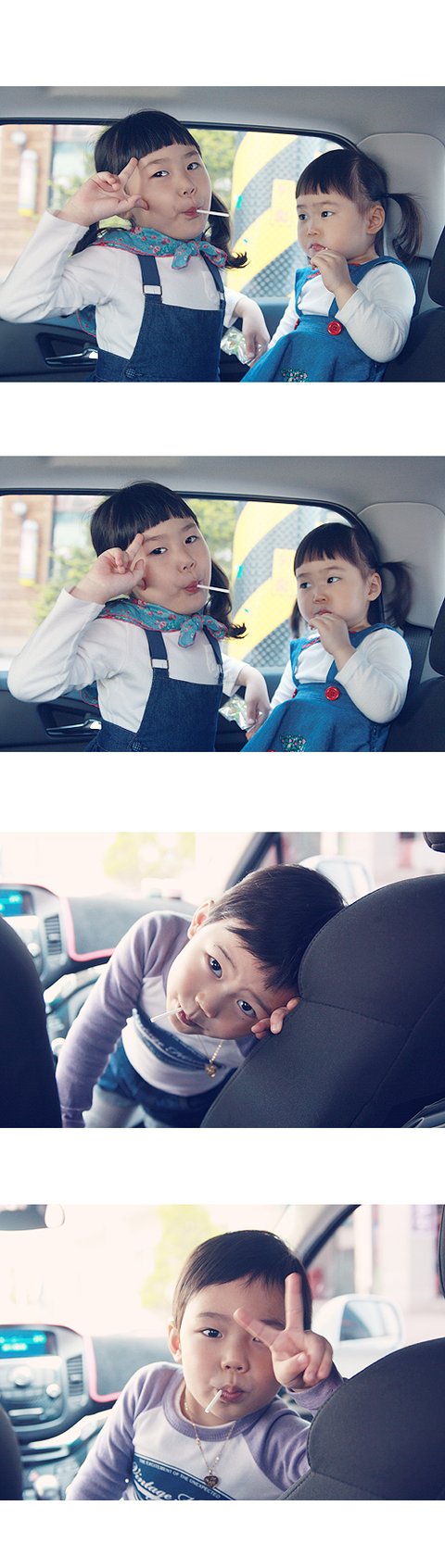 놀이공원으로 출발하기전 차안에서 얌전히 있으라고 입에 사탕 하나씩 물려주고 찰칵ㅋㅋ