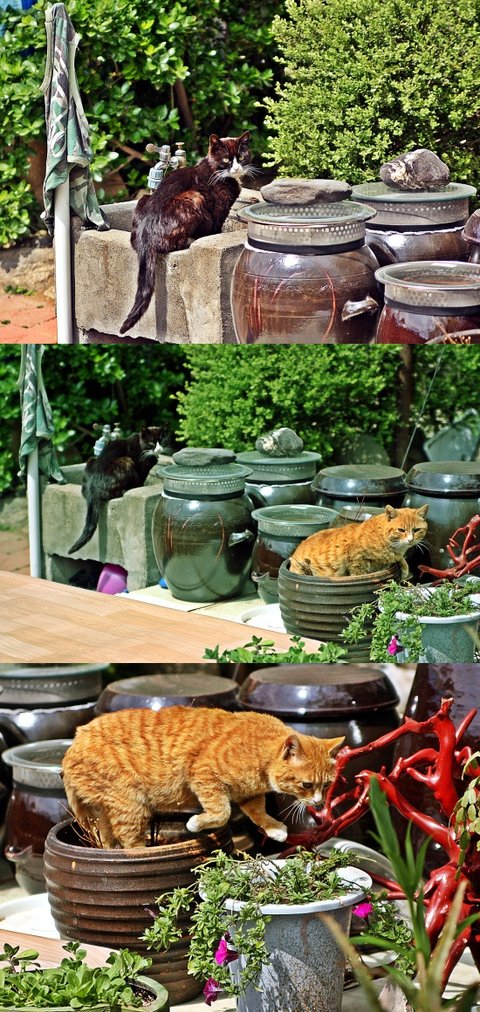 까페 건물이지 바로 뒷집인지 귀여운 고양이 두마리가 늘어지게 돌아다지길래