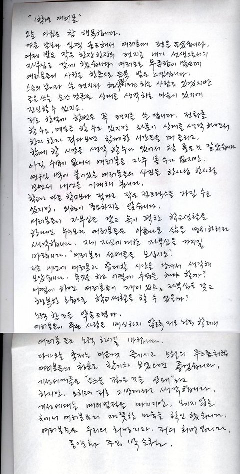 훈 to the 훈 추계예대 교수님의 편지