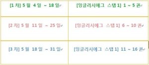② 각 주별로 참여 대상 교재가 다르답니다~ (ex) 1차에는 1~5권 교재의 영어를 사용하는 모습)