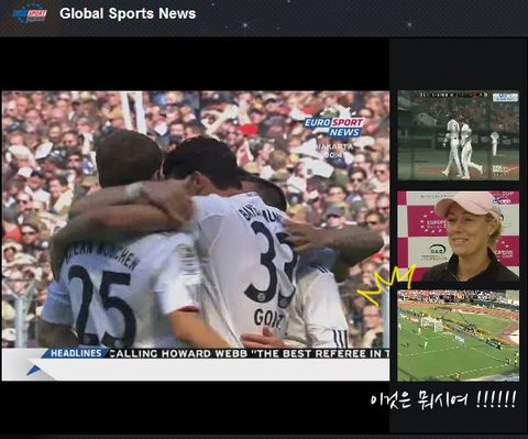 EURO SPORT를 한 눈에 보면서 멀티 기능을 클릭 했더니 옆에 바로 영상들이 뜨더라구요!