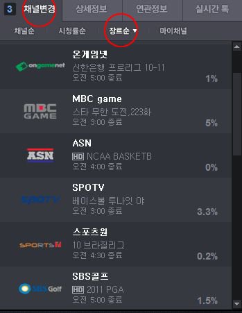 원하시는 채널별, 장르별, 또 시청률순이나 자주 찾는 채널로 등록해놓은 마이 채널을 클릭하셔서