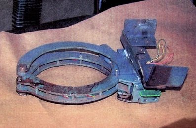 폭탄은 수갑과 같은 형태로 채워지는 강철 고리로 목에 걸리도록 되어 있고,