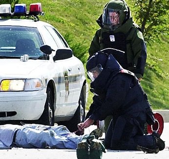 경찰은 웰스를 길 위에 앉혀둔 채, 폭발물 처리반을 부르기로 결정했다.