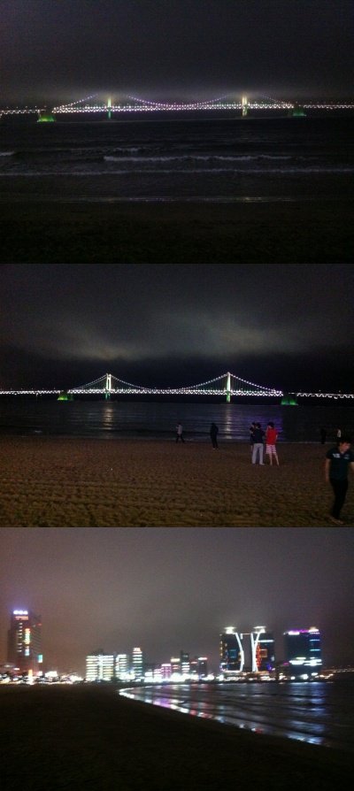 부산대갔다가 광안리로 고고 여태껏 힘들었던것들이 바다를 보면서 눈녹듯이 아주그냥 사르르 녹았습니다. 안개도 꼈지만 진짜 광안대교와 해수욕장이 너무 잘어울리고 말로 표현할 수 없을만큼 너무 기분이