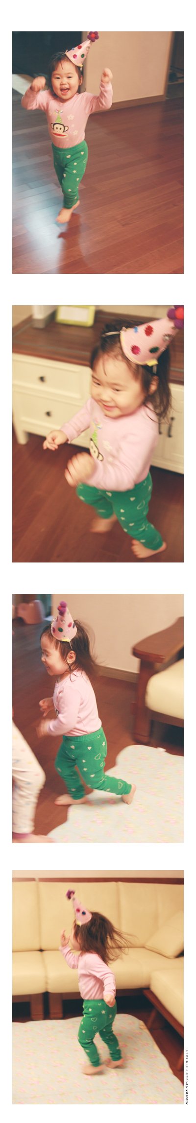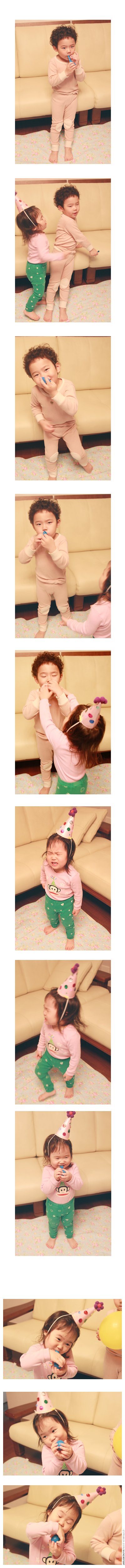 잠시후에 소울이는 지후가 어린이날 유치원서 만들고 왔던 고깔모자를 뒤집어 쓰고 완전 신이나서는