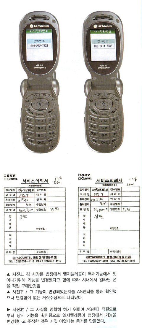 김 사장은 내 특허를 채택, 모방하고는 특허 침해를 피하려 한 흔적이 역력하다며 엘지텔레콤에 따졌다. 그러나 엘지텔레콤은 오히려 특허기술권리에 공동소유와 더불어 기술을 무료로 사용하도록 허락하지 않으면 소송을 통해 특허등록을 무효화 시키겠다는 협박적인 주장을 내세웠다고 한다.