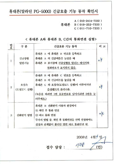 이 비상버튼이 부착된 휴대폰을 소지한 사람이 강도를 만나는 등의 위기상황에 처했을 때 가해자 모르게 휴대전화의 바상버튼만 누르면 보호자의 전화로 위기상황을 알리게 된다. 이때 보호자의 휴대폰에서 통화버튼을 누르면 즉시 도청방식으로 전환되어 위기상황에 처한 단말기 소지자의 다른 작동 없이 현장의 진행되는 상황의 소리를 들을 수 있는 프로그램기술로 2001년 9월 10일 특허를 출원했다. 이 특허는 2003년 3월 31일 특허 등록번호를 부여받았고 2003년 4월 11일 공고되어 특허공보에 실렸다.