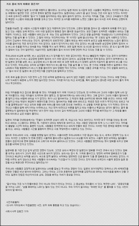 저는 오늘 그 많은 배울점 중에서 한국인에게 특히 결여되어있는 부분에 대해 강조하고자 합니다.
