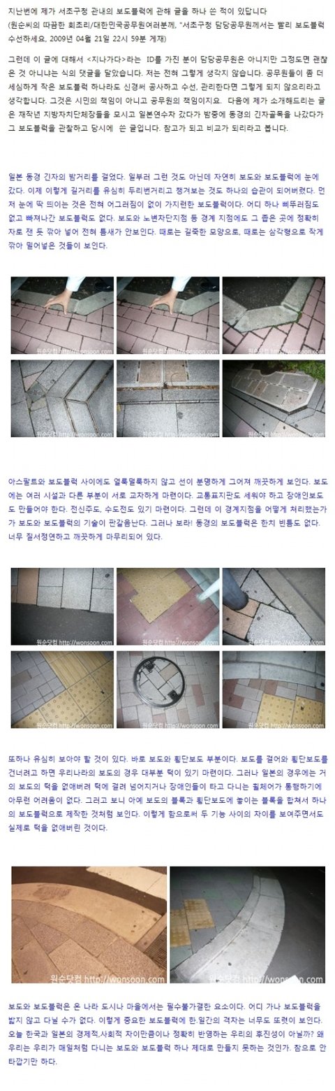 한국인들이 별 의식없이 걸어다니고있는 보도블럭이나 포장도로의 정비상태도 의미합니다.
